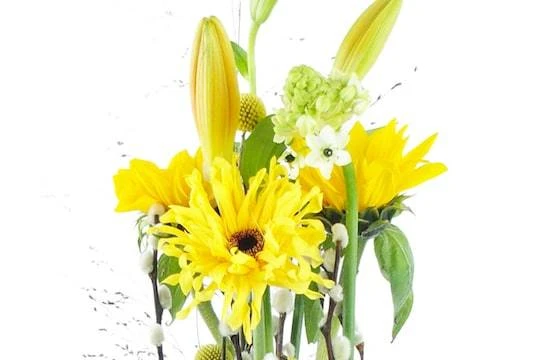 Détail de la composition: Assemblage de fleurs en hauteur dans les tons jaune et une pointe d’orange. Composé de gerbera, tournesol (selon la saison), lys, chaton (ou branchage bois) et diverses feuillages. Le tout piqué dans un contenant rond en céramique foncé. (Fleurs et contenant céramique variables selon les saisons et la disponibilité en magasin tout en gardant l’esprit, la forme et les couleurs). (Ref Florale : 2308 – Madison). Visuel non contractuel – Visuel correspondant à la formule Meilleur Compromis.