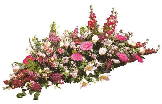Vous souhaitez envoyer une raquette de fleurs pour le deuil d’un être cher perdu ? Découvrez et commandez-en ligne sur notre site internet cette magnifique raquette de fleurs qui porte le nom Paisible. Toute en longueur et dans les dégradés de roses, elle se compose de magnifiques et majestueuses roses aux pétales roses et roses blanches et de lys blancs. Suivie d’un ensemble de fleurs très originales tel que du muflier rose pour donner de la hauteur et du volume à la raquette. Du trachelium, une fleur très particulière de couleur lavande en forme de boule, du lisianthus blanc qui à s’y méprendre ressemble à la rose et du gerbera de couleurs roses pour terminer cet ensemble floral. L’artisan fleuriste qui réalisera cette création florale de deuils rajoutera une touche de verdure dessous et à la base tels que de lierre, de la fougère ou toute autre verdure disponible dans sa boutique.